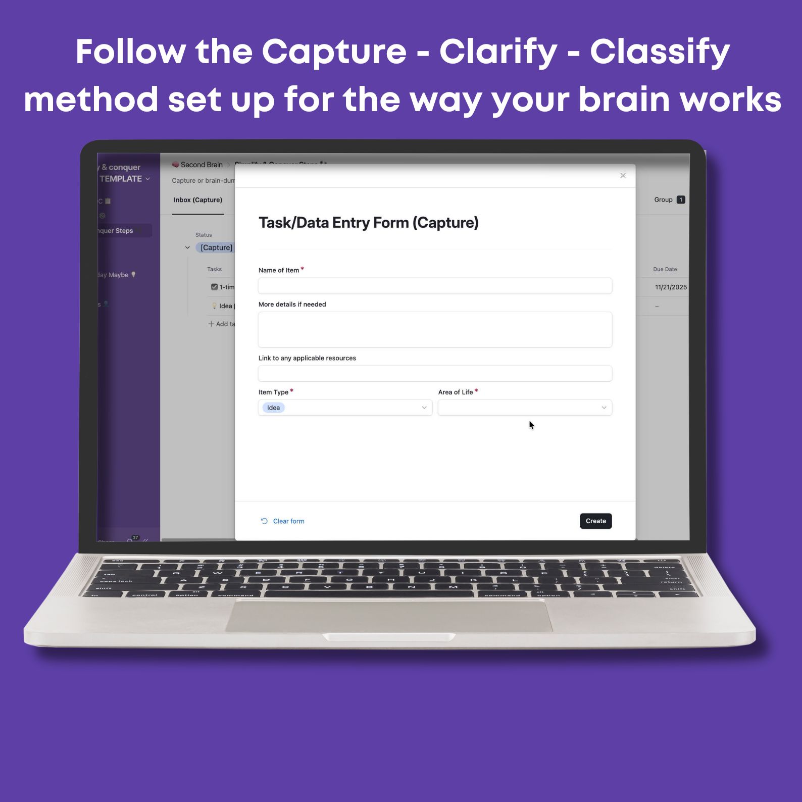 ✅ Capture & Clarify – Quickly brain-dump tasks, ideas, and reminders into one clear inbox